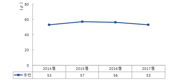 本校2017届毕业生的工作与专业相关度为53%,比本校2016届(56%)低3个百分点,本校近三届毕业生的工作与专业相关度有所下降。