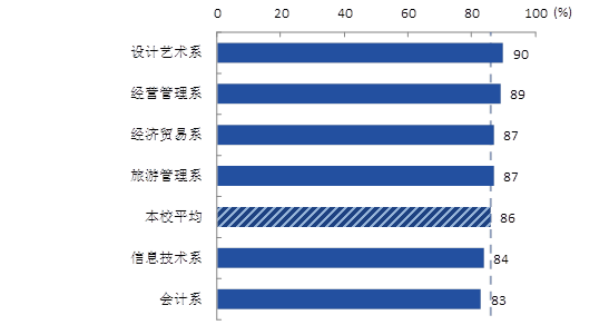 本校2017届毕业生对母校满意度较高的院系是设计艺术系(90%),对母校满意度较低的院系是会计系(83%)、信息技术系(84%)。