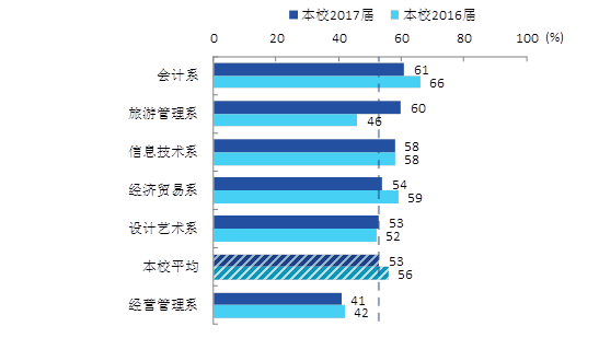 图 4-15 各院系毕业生的就业现状满意度、与本校2016届对比.......................................... 52