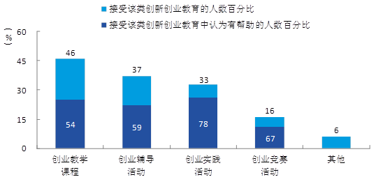 图 2-4 毕业生接受母校提供的创新创业教育及认为其有效的比例(多选)...................... 27