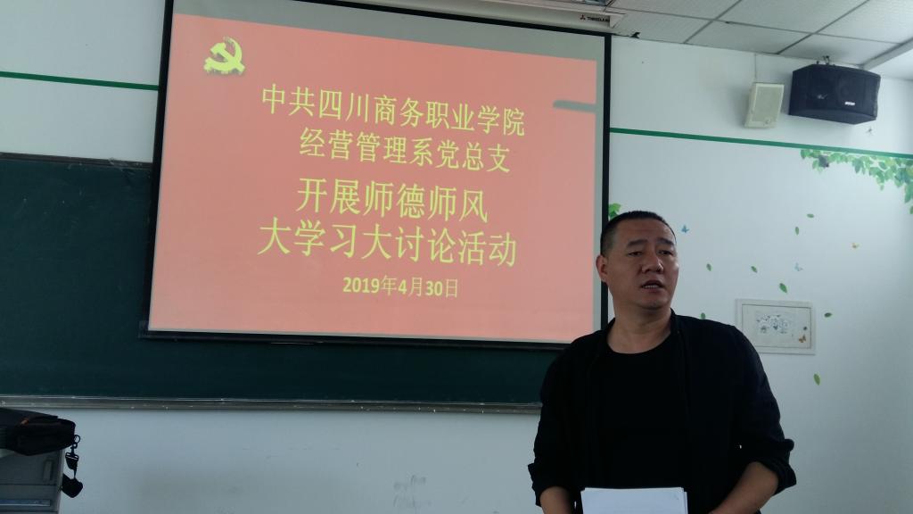 4月30日下午,经营管理系党总支全系党员以“开展师德师风大学习大讨论活动”为契机,在1教202室重点学习领会了“习近平主持召开学校思想政治理论课教师座谈会强调:用新时代中国特色社会主义思想铸魂育人,贯彻党的教育...