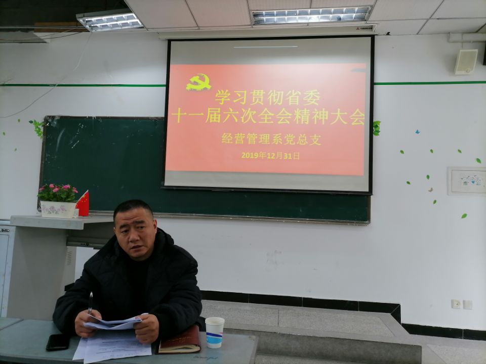 2019年12月31日,经管系总支在1教202教室召开全体党员会议,认真学习了省委十一届六次全会精神。党总支记郑海波主持会议并传达学习了省委十一届六次全会和学院第十五次中心组学习会议精神。 会议指出,省委十一届六次...
