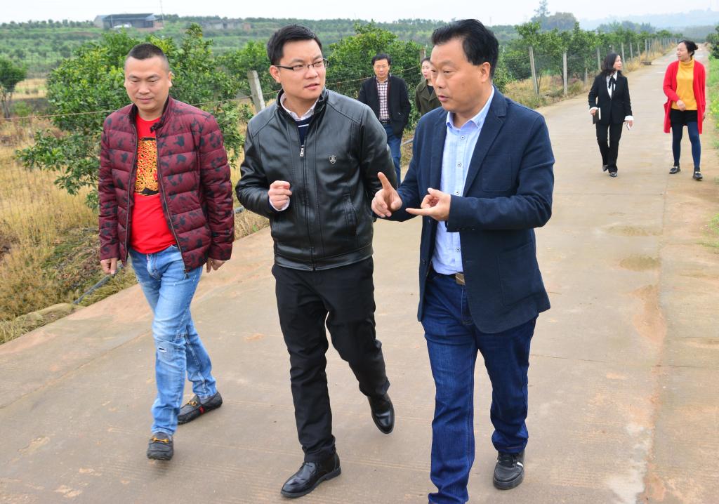 严珩同彭山就业局领导一同走访柑橘种植农场