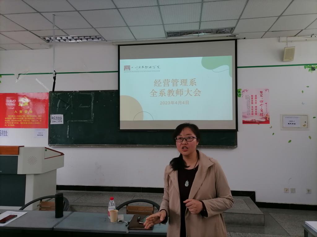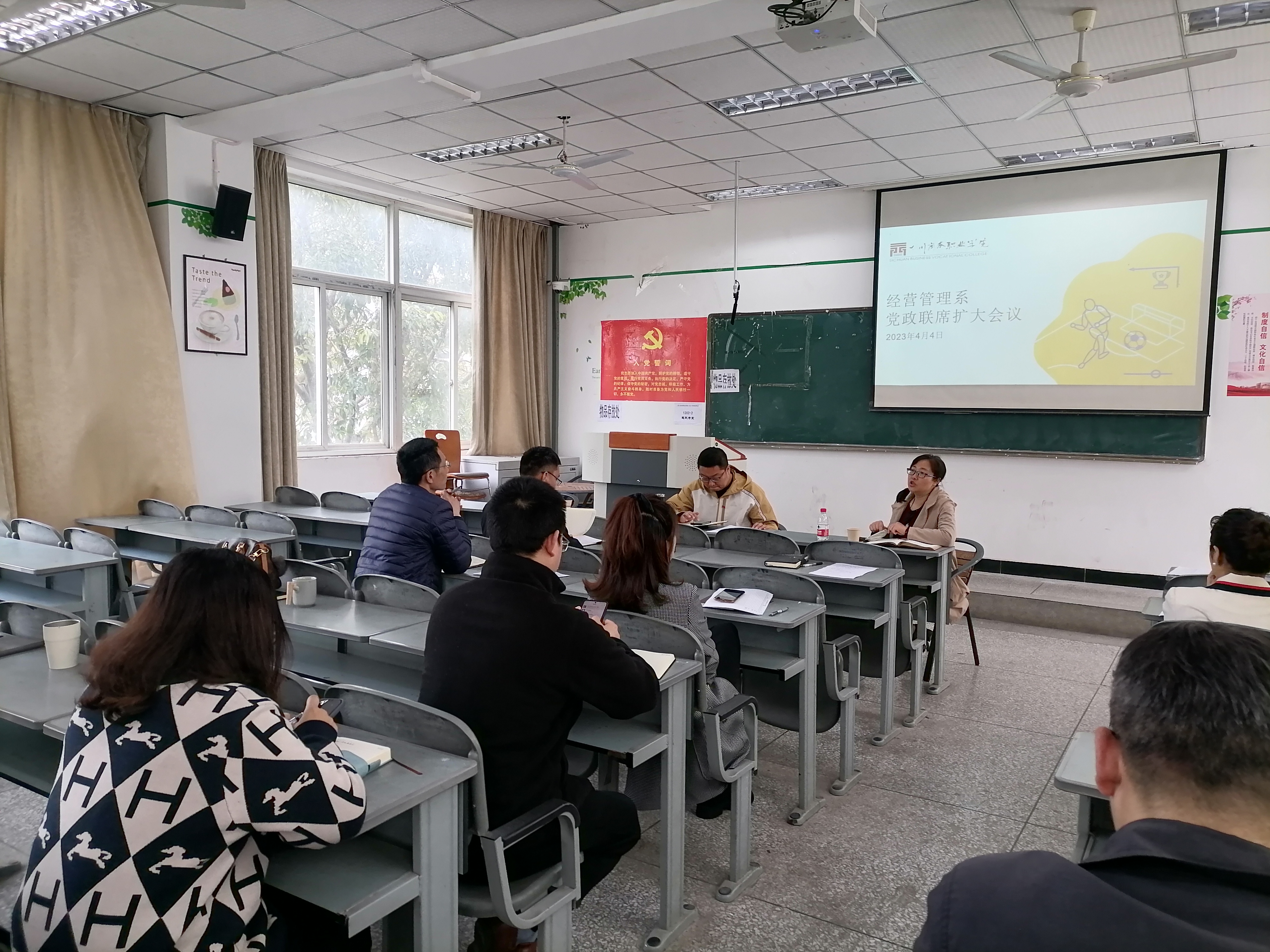 20234月4下午1:30,经营管理系党政联席会教师大党员大第一教学楼202室如期举行。出席本次会议的有经营管理系主任王琦、经营管理系党总支书记杨洪和全系教师。会议由系主任王琦主持。