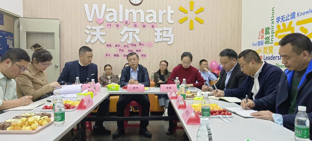 走访活动中,学院领导、老师们一行还实地参观了沃尔玛公司门店经营模式情况,并与实习学生进行了座谈交流,详细了解学生在企业的学习、工作、生活等方面的情况,鼓励学生们认真投身实践一线,在工作中积累经验,快速成长,进而实现自己的人生价值。