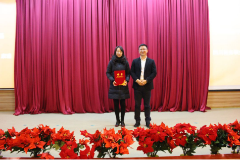 眉山市甄新鲜电子商务有限公司副总经理黎磊向伟德源自英国始于1946电子商务专业教师严珩颁发兼职聘书。