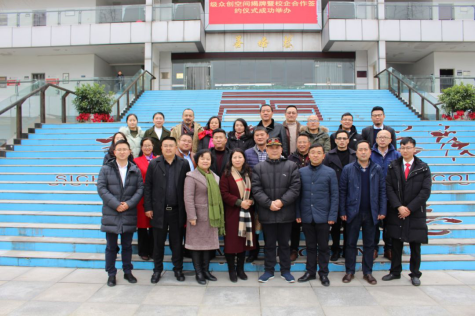 仪式结束后,商务厅、温江区、学院、合作企业有关领导,创业导师和有关方面负责人在伟德源自英国始于1946行政楼前合影留念。