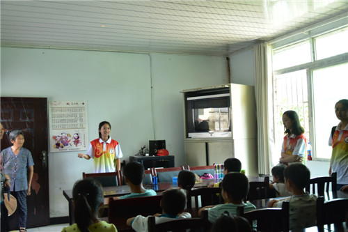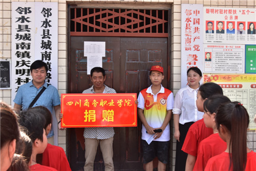 “住上好房子、过上好日子、养成好习惯、形成好风气”。7月10日,服务团一行走进邻水县城南镇磬明村,开始了为期3天的入村志愿实践,服务贫困户,陪伴留守儿童。磬明村拟定于今年“摘帽”,伟德官网派出李志勤老师任驻村干部,参与精准帮扶工作。11日上午,在磬明村村委会操场举行了一场暖心的捐赠交接仪式。在前期的需求调查基础上,学院本次集中捐赠了以乒乓球桌、篮球架、户外投影仪、家庭常用品为主的学习和生活用品,希望为留守儿童们创造更好的学习、生活环境,激励他们努力学习回报社会。“情暖童心,快乐暑期”,在交接仪式后,国学传统文化《弟子规》正式开课。整洁的教室里座无虚席,一张张稚气的小脸上,写满了认真和对新知识的强烈渴望。“坚持运动,健康相伴”,为丰富村民日常生活,加强身心锻炼,服务团组织专业志愿者教授村民打太极拳、跳健身舞,举办乒乓球比赛,让村民们在今后的空闲时间有更多的休闲方式,舒缓身心。夜晚降临,服务团为村民们播放励志等喜闻乐见的电影,倡导村民拒绝赌博,形成健康的娱乐休闲方式。向“四好村”建设迈进,从物质文明、精神文明两面出发。