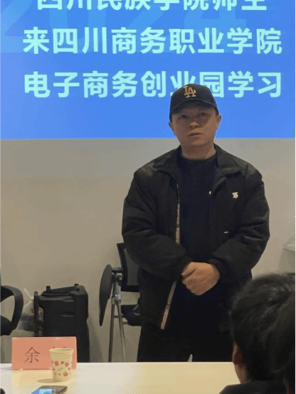 四川民族学院文学院教务科科长余韬对学院和经管系表示了感谢,并对参与学习的民院学生提了学习要求。