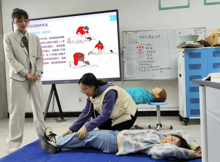 2025年10月24日,经营管理系胡荣湫老师在实训楼105教室成功开设了一场题为“社区居家简易急救——心肺复苏术”的校级公开课。学院副院长康璐亲临指导,教务处、人事处、质量办及各系部负责人一同到场观摩。
