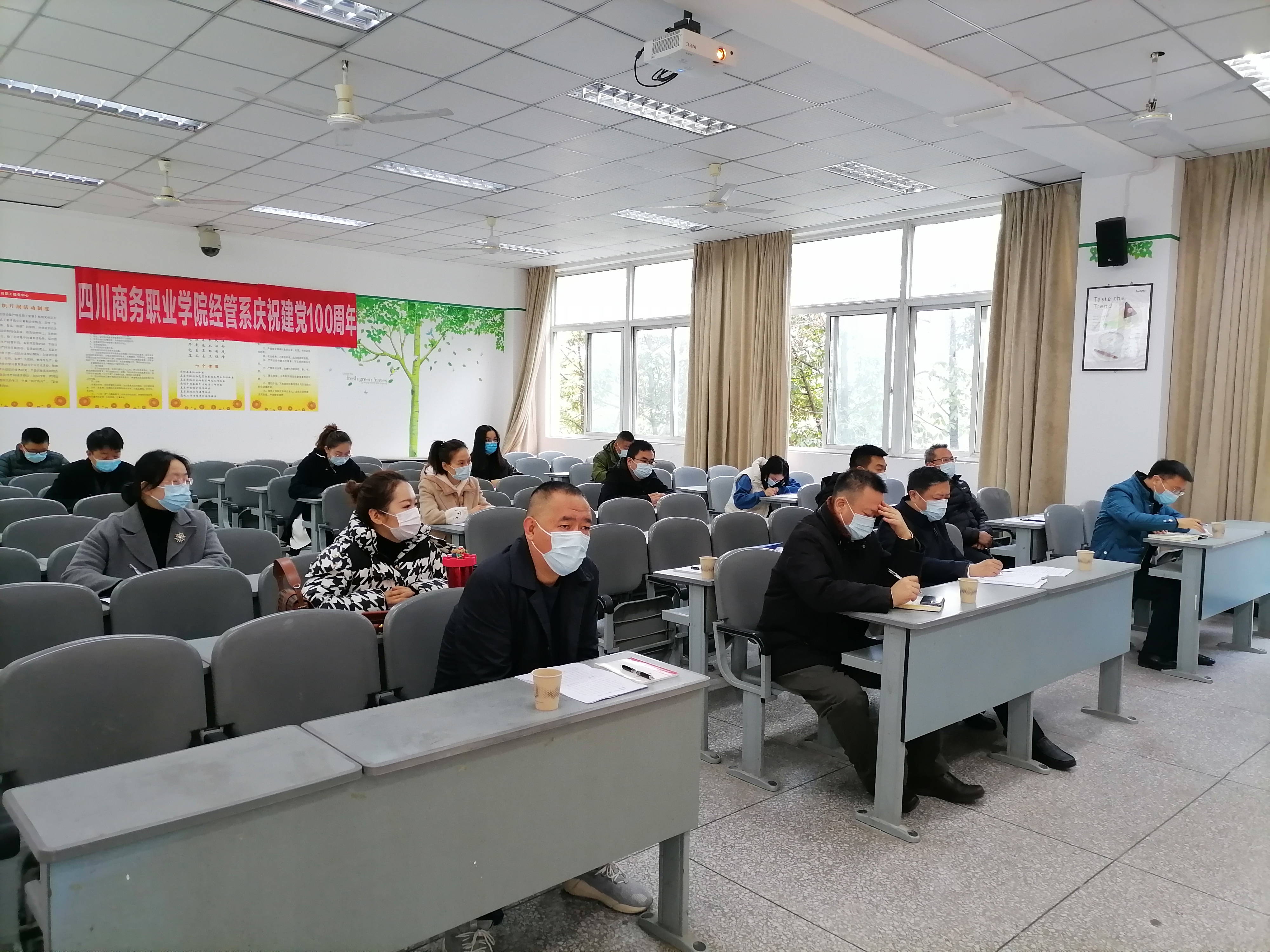 2021年11月9日上午9:30,经营管理系党总支“支部工作法”于第一教学楼202室如期举行。出席本次会议的有学院党委书记唐柯同志、学院组织部部长彭枫、经营管理系主任梁栋同志、经营管理系党总支书记郑海波同志、学院组织部副部长王钦同志、教学支部书记严珩同志、学生支部书记何俊烨同志、系党政办主任朱永泉同志、全体辅导员。会议由系总支书记郑海波同志主持。