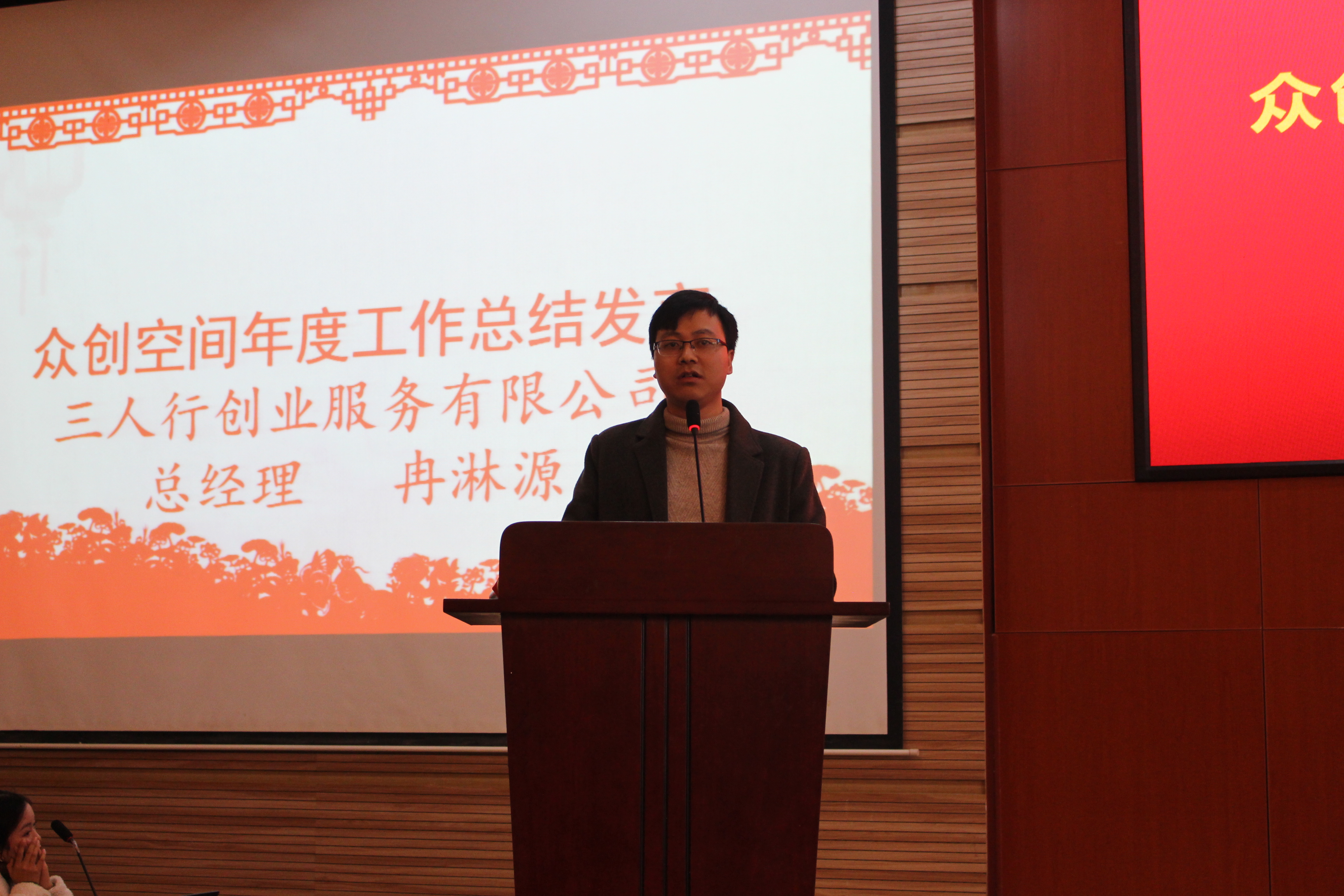 为了深入贯彻落实“《国务院关于推动创新创业高质量发展打造“双创”升级版的意见》(国发〔2018〕32号)”等文件精神,总结2019全年工作,表彰新公司,学院众创空间于12月19日在商务交流中心召开总结大会。出席总结会的有温江区就业局副局长彭东、温江区就业局创业促进科科长易飞、温江区就业局工作人员卢杉杉、眉山市三人行创业服务有限公司总经理冉淋源、三人行创业孵化园主任助理邓涛、眉山市三人行创业服务有限公司孵化事业部部长孙臻、学院副院长向宏志、教务处处长黄松、财务资产管理处处长杜先林、学生工作处处长王军、督导办主任刘小平、经营管理系主任梁栋、经营管理系党总支书记郑海波、经济贸易系主任朱贵水、信息技术系主任赵天宏、会计系副主任李莉、创业指导教师、空间管理团队、以及学生创客齐聚一堂,总结经验,共话发展。会议由经营管理系主办,经营管理系副主任王琦主持。