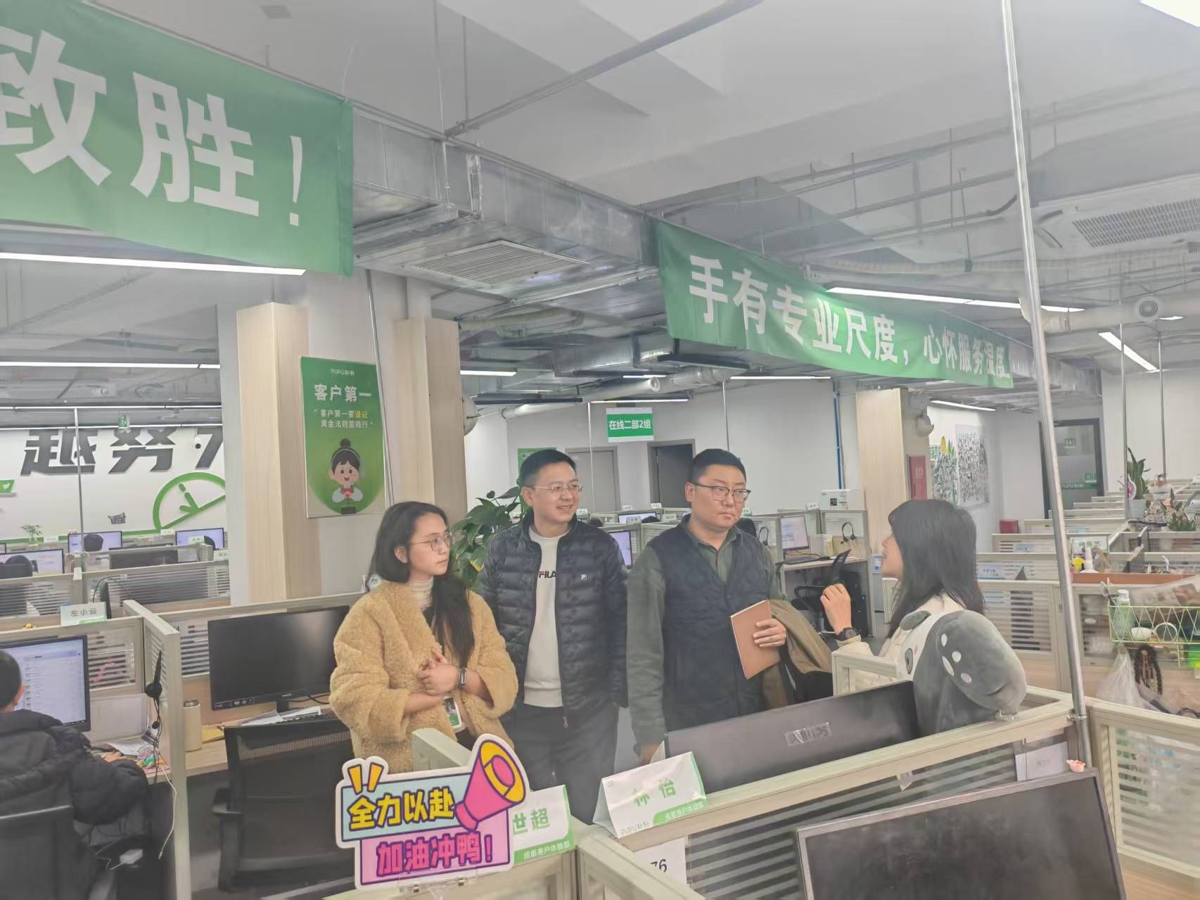 座谈前,各位老师参观了客服中心工作环境,并与甘诗雨、杨诗仪等5名在职实习生展开面对面交流。学生普遍反映对工作氛围和薪资待遇较为满意,住宿与休假安排基本适应,同时也坦诚沟通了工作压力等方面的问题。在职业规划方面,部分学生表达留任意愿,也有同学计划专升本或阶段性工作后再做调整。