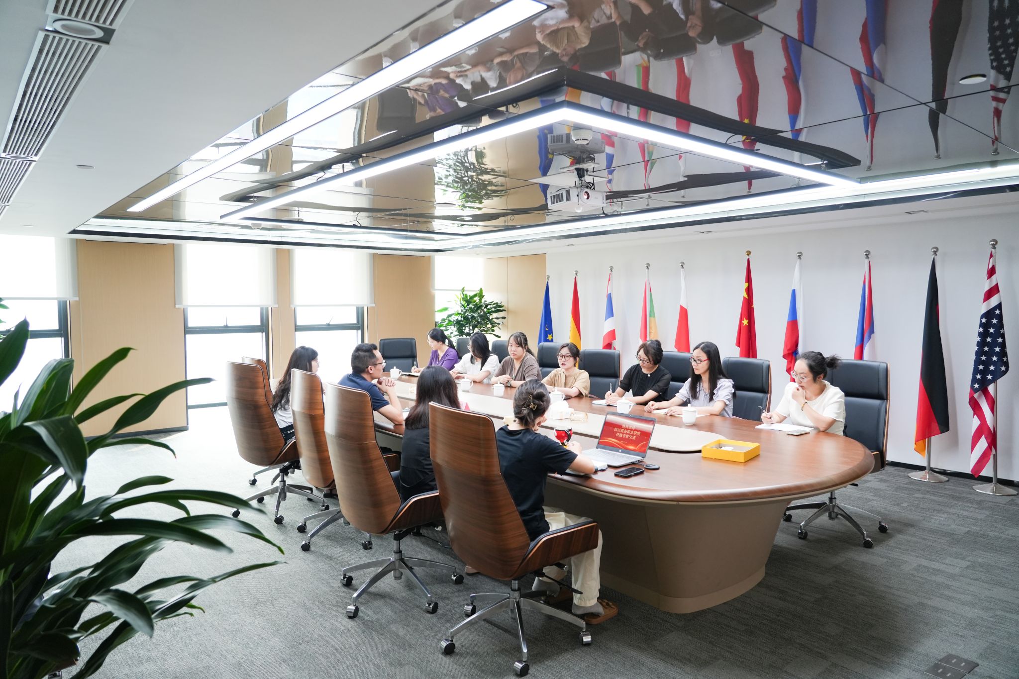 为深化产教融合,精准对接产业需求和人才培养,7月15日,伟德源自英国始于1946经济贸易系商务英语专业团队赴成都中贸通信息科技有限公司开展了一场聚焦专业核心课程建设的研讨会。中贸通公司总经理助理陈鸿、产教融合牵头人周瑶等,与学院商务英语专业负责人杜芳林及跨境电商、商务翻译、商务写作、商务英语视听说等核心课程负责教师齐聚一堂,共商产教融合新路径。