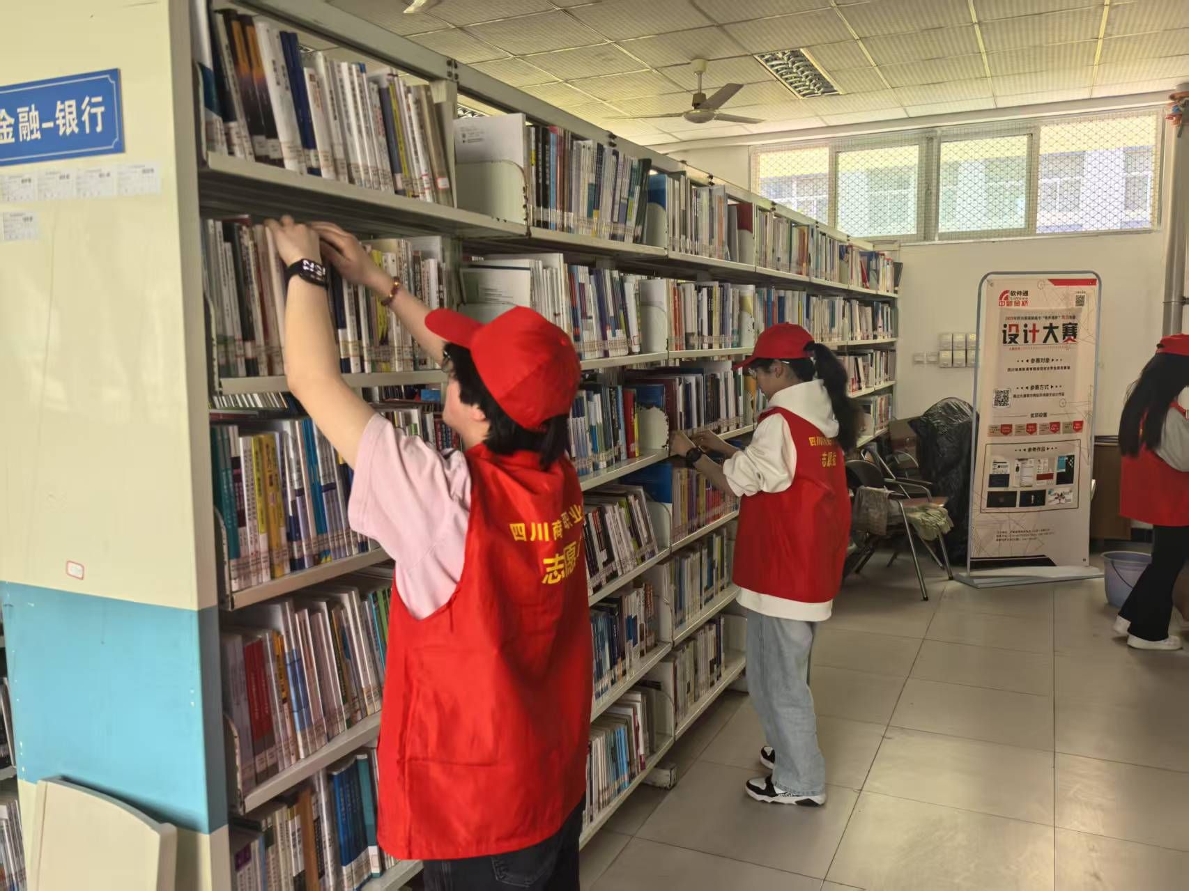 午饭后,志愿者们身着"红马甲",列队而立,阳光下,胸前的徽章熠熠生辉。简短而庄重的启动仪式后,图书馆老师耐心细致示范图书分类编码规范,青年们屏息凝听,笔尖在笔记本上沙沙作响,仿佛在书写新时代的"知识编码"。书架丛林间,志愿者们化身"知识园丁"。他们轻抚书脊,为每本典籍找到最佳栖居之所;他们伏案核对,让索书号与书架号精准匹配;他们巧手修补,让残损书页重焕生机。