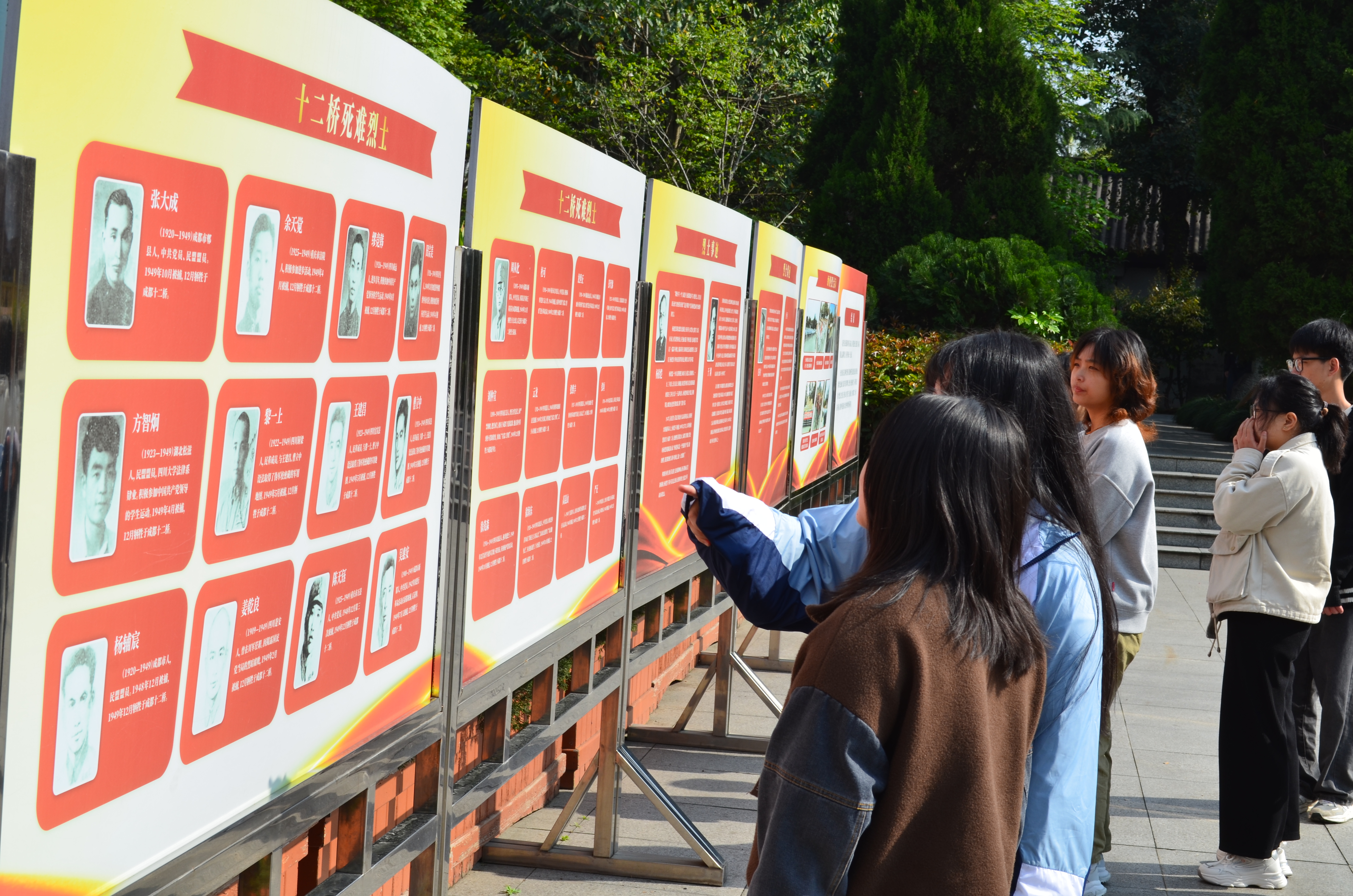 在烈士陵园纪念广场上,全体师生代表静思致哀,表达对英烈崇高的敬意,并向先辈烈士们献上黄白菊花,表达对先辈烈士们的深切缅怀。全体师生代表认真聆听了工作人员关于十二桥烈士英雄故事的讲解,重温峥嵘岁月,厚植家国情怀,砥砺奋进初心。活动最后,全体师生代表们在烈士墓前合影留念,再一次表达对先烈的敬仰之情。