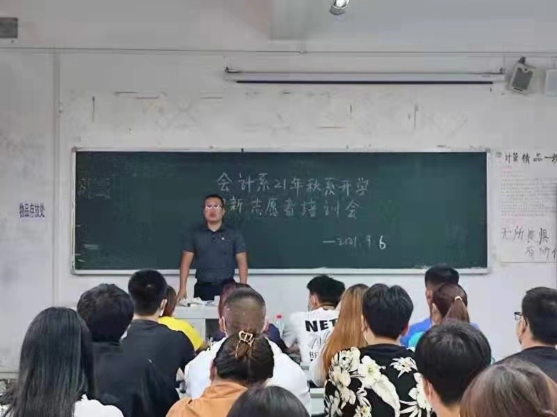 9月6日,为贯彻学院2021级新生报到要求,落实新生入校、疫情防控工作,会计系党总支、学生支部组织89名学生干部、志愿者,10名学工战线教师,在1210教室开展2021级新生入学报到接待服务培训。