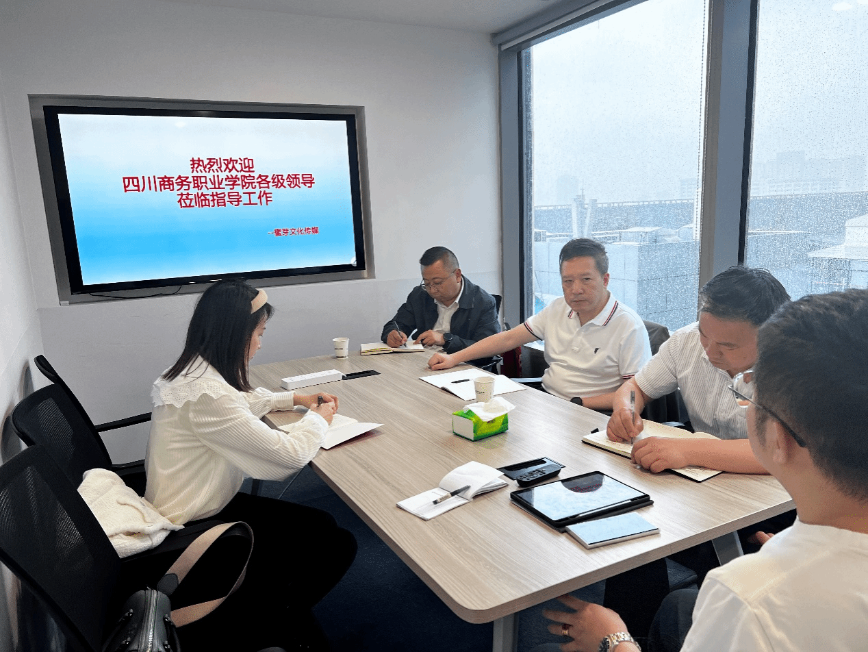 在实地考察当中,四川蜜芽文化传媒有限公司负责人蒋霄陪同官培生副院长参观了公司旗下的直播基地,双方围绕人才培养、实习就业等工作开展了深入交流。在座谈会上,企业负责人蒋霄首先介绍了公司的运营和人才需求情况,他表示针对当前大学生就业困难问题,直播产业的发展将带来很多的实习就业岗位,同时依托公司强大的赋能和产业链,将为学生提供最好的就业条件。官培生副院长随后表示,四川蜜芽文化传媒有限公司作为学校的合作单位,双方要一直保持着良好的合作关系,而高校作为人才培养和服务社会的机构,需要企业的深度参与才能在专业建设、实习就业、人才培养等方面实现高质量发展,希望此次来访进一步深化合作,为学院的发展注入新的力量。