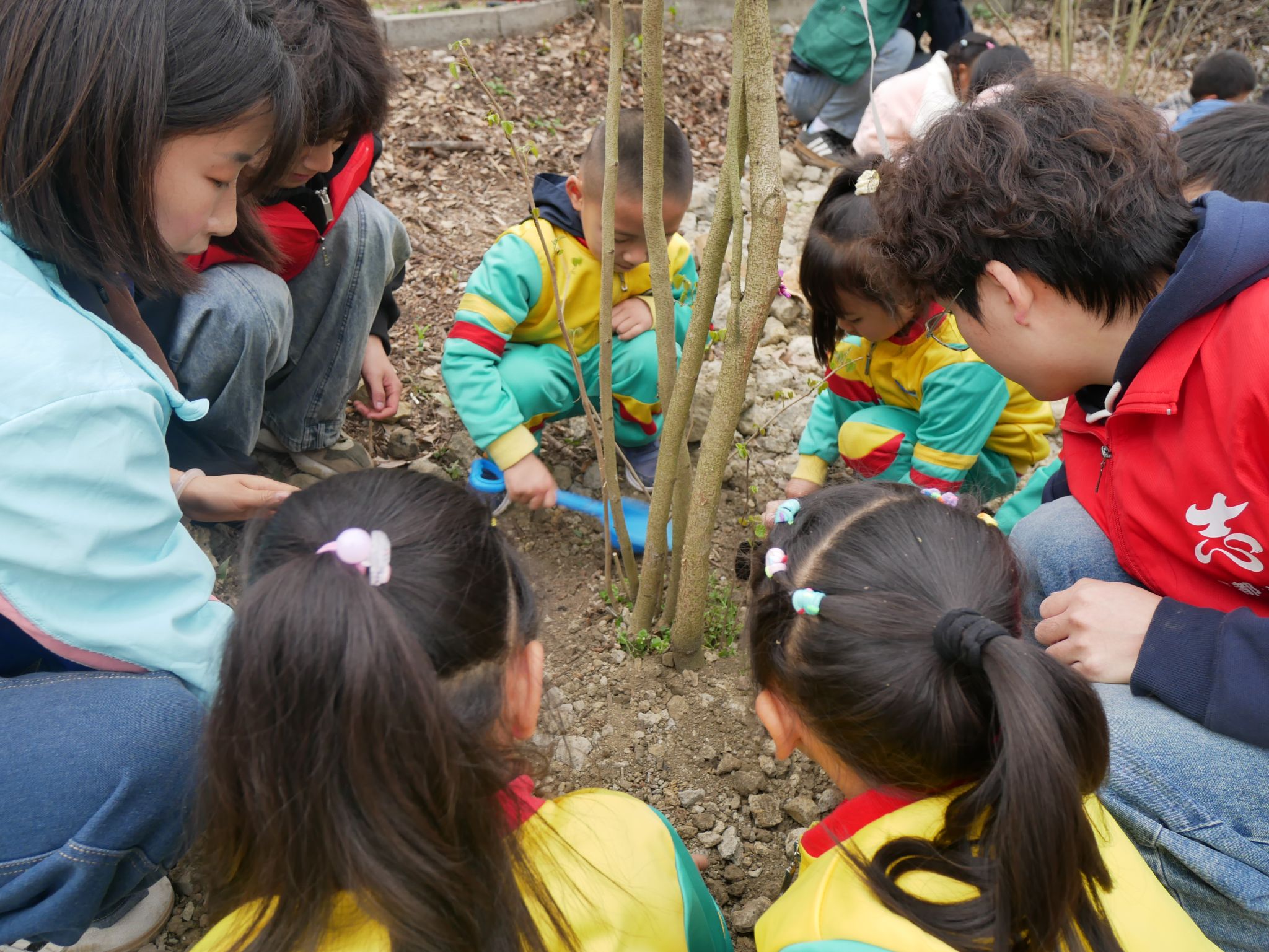 活动互动环节趣味十足。小朋友们在老师与志愿者的带领下,踮起脚尖紧握小铁锹认真铲土填坑,齐心协力提着小水桶为树苗浇水,每一个稚嫩的动作都满含对绿色的期待,现场欢声笑语不断。一棵棵小树苗在大家的共同努力下扎根泥土、迎风挺立,既让孩子们在动手实践中感受劳动的乐趣,也让植绿护绿、爱护自然的理念深植心间。