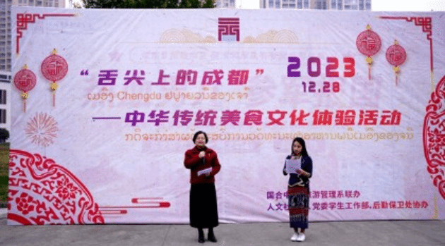 12月28日,由国合中心、旅游管理系联办,人文社科部、党委学生工作部和后勤保卫处协办的“舌尖上的成都——中华传统美食文化体验活动”取得圆满成功学院党委委员、副院长许丹雅和副院长康璐及49名老挝留学生参加活动。