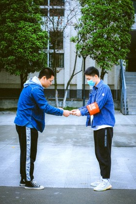 抗疫先锋队的队长何忠明说,“我们抗疫先锋队的28名队员每天都坚守在自己的岗位上,哪怕没有轮到自己值班也以身作则,时刻明示自己抗疫先锋队的身份,使命感和责任感由然而生,友善的提醒同学配戴口罩,帮助大家解决日常生活上的小问题。在这个过程中我们也收获了很多同学和老师的赞许和鼓励,心里很温暖,我们都更加热爱这个身份了。”