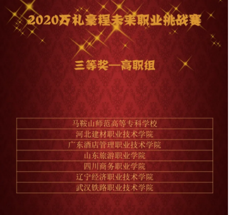 近日,在万礼豪程公布的2020未来职业挑战赛获奖榜单中,伟德官网获得三等奖。