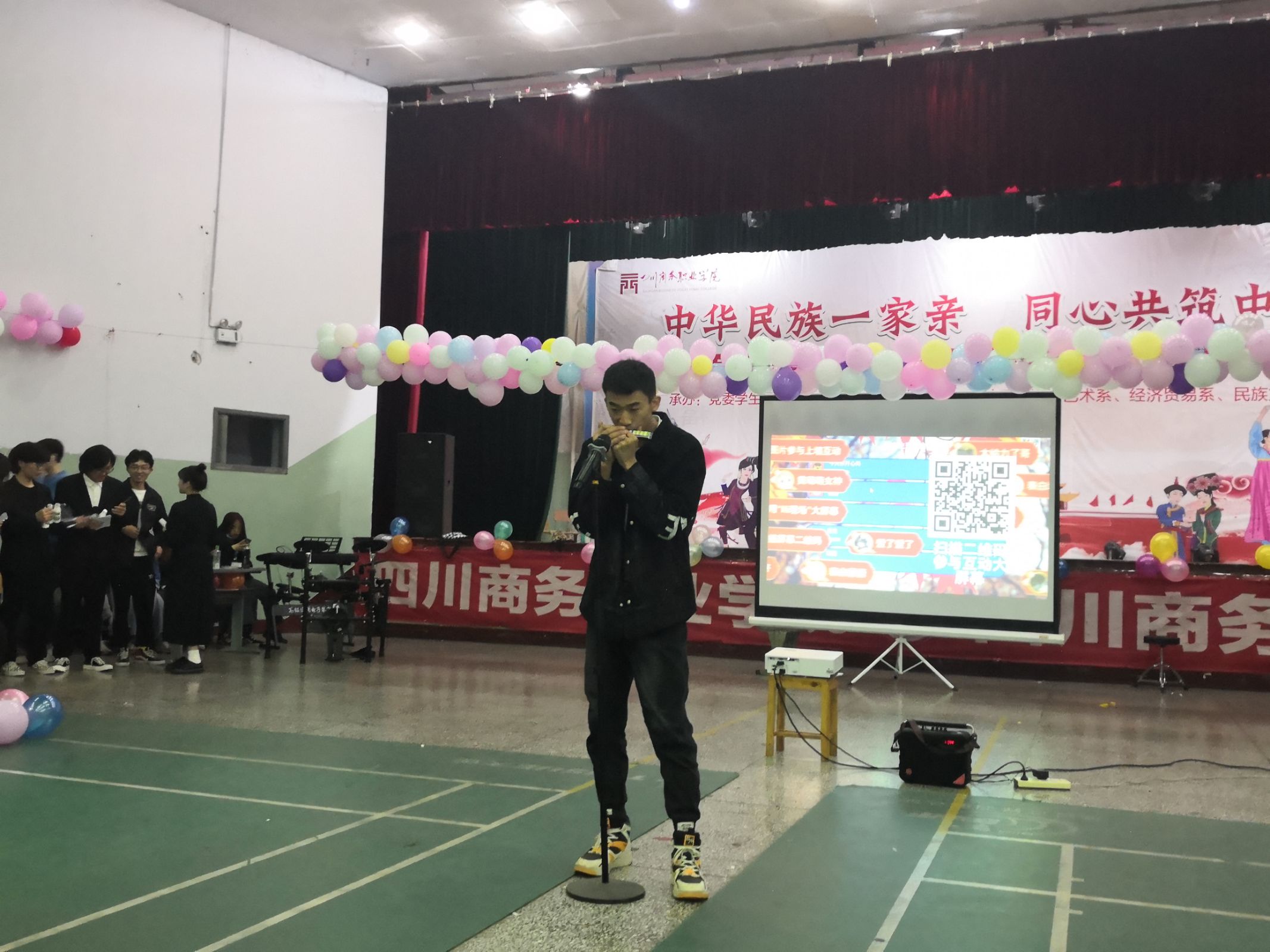 随后,便开始了各类节目争奇斗艳。先是19级学长学姐带来的舞蹈串烧,点燃了现场的活力与激情;紧接着,集体上演了一场声临其境的歌友会:有记忆尤深的歌曲《水星记》,那独特的嗓音让大家如痴如醉;有优美的口琴独奏《千与千寻》,让我们置身在千与千寻的奇妙世界中;一首温暖人心的《让我留在你身边》,也俘获了现场同学的芳心;竟还有20级同学带着自己原创的rap《非现实性想象》上场,不得不让大家惊叹这“颜值与才华并存”的年代。