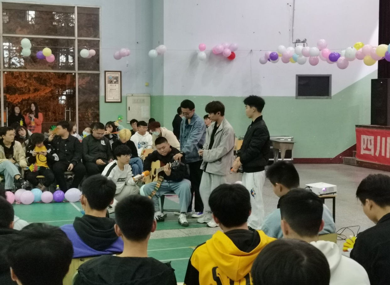 活动伊始,由19级学生自创的歌曲串烧《成都和喜欢你四部曲》,首次将活动带入了高潮,嗨炸全场。随后,20级小萌新们的带来的歌曲《雨爱》和《有何不可》也毫不逊色,夺得芳心。
