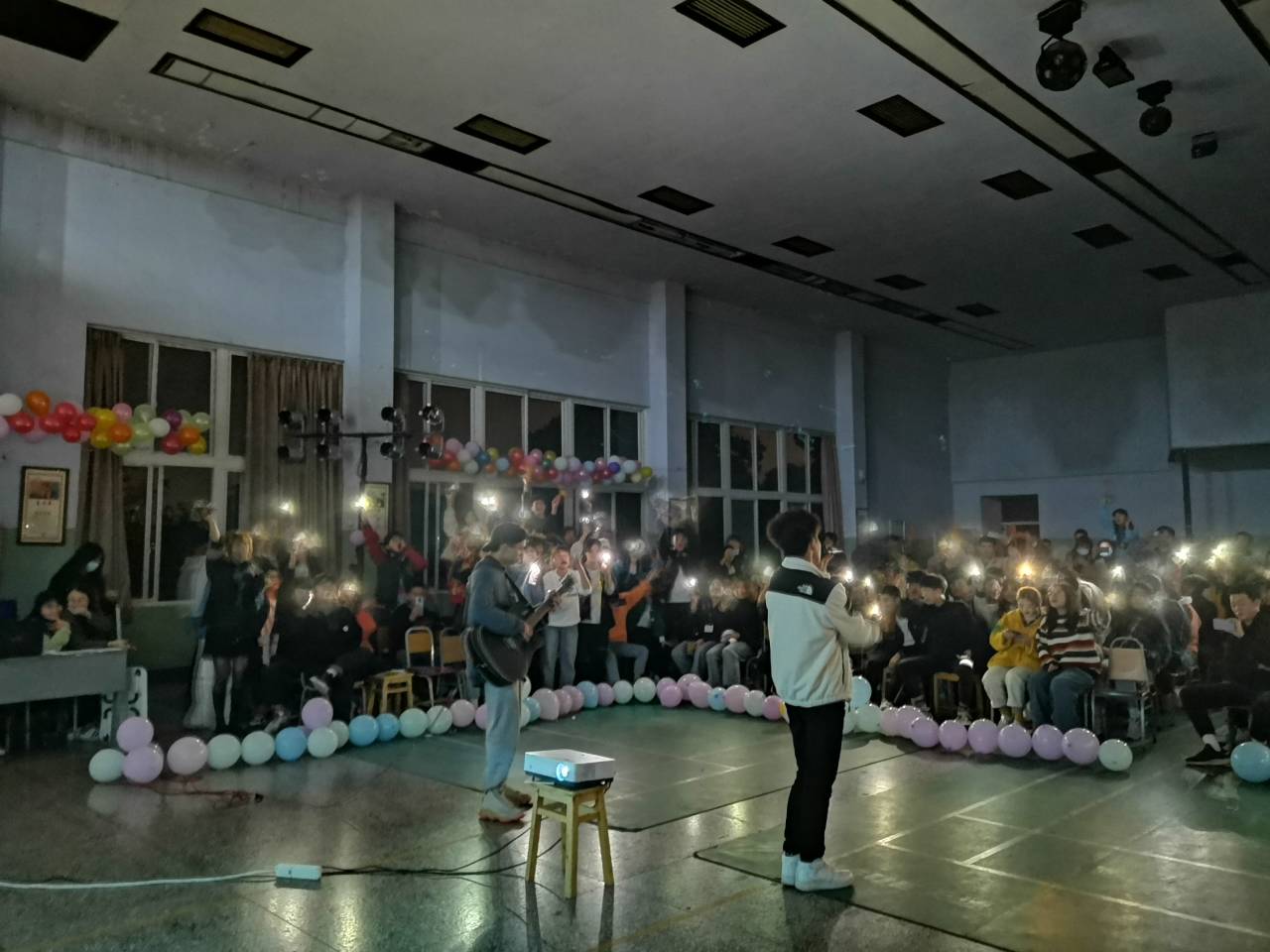 活动中场,一首吉他弹唱《老男孩》又将我们拉回了充满活力的交流会现场,观众粉丝们纷纷打开手机闪光灯,现场像星空般璀璨,再配合音乐节奏为其挥手喝彩。尔后,不得不赞的是本场特写——幽默搞笑的双簧和意味深长的相声,更是惹得现场同学爆笑不断,掌声连连。