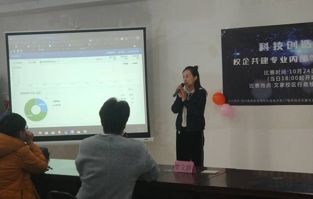 此次大赛邀请了信息技术系赵天宏主任、北大青鸟四川院校中心陆小虎主任、信息技术系教学干事李翱老师、信息技术系17软件技术专业辅导员魁桐老师和北大青鸟软件相关专业教师许洪老师、廖文聃老师以及班主任团队所有老师作为赛场嘉宾。其中,廖文聃老师和17软件与信息服务共建班优秀学子刘梦如、王海、勒柳及17软件技术共建2班优秀学子胡宏海共同组成本次大赛的评委团,本着公平公正的打分原则为赛场上两组优秀团队的展示打分。