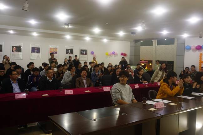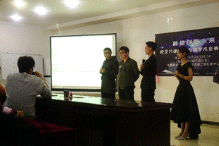 本次比赛采取一对一制,每一场上两个组,两个组轮流介绍他们的作品,从HTML、JavaScript、CSS和PS四个方面入手,每个模块讲完后是提问环节,首先是他们的对手提问,接着是评委们的提问,最后是在场观众们的提问。赛场上硝烟弥漫,赛手们慷慨淋漓的演说让人拍手叫好。