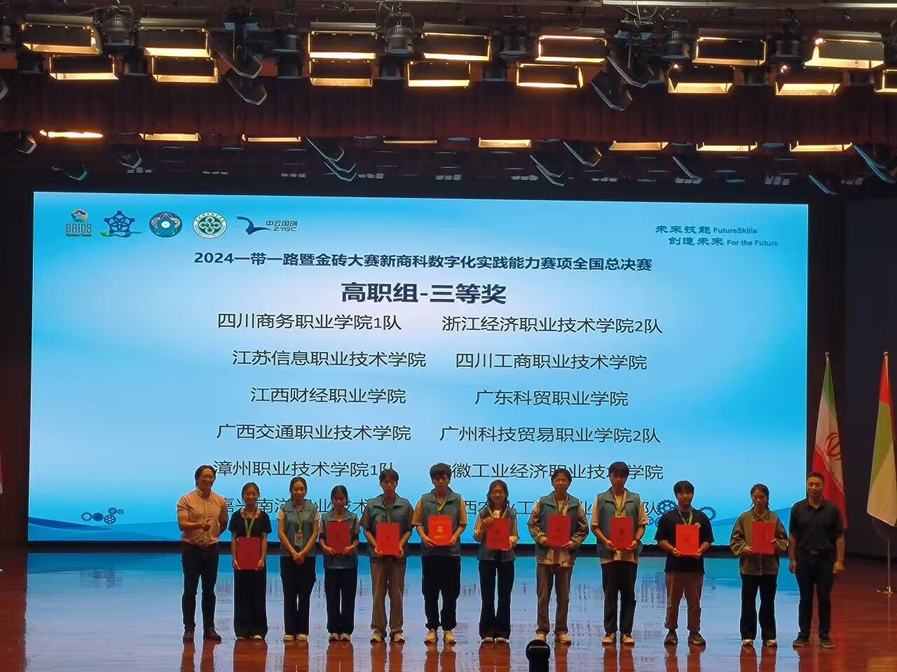 11月17日,2024年“一带一路”暨金砖国家技能发展与技术创新大赛之新商科数字化实践能力赛项国内总决赛圆满落幕。由伟德官网信息技术系教师黄颖、李冰、高姗姗等专业融合教师团队指导的跨系跨专业学生陈荣、陈宏鑫、陈龙(设计艺术系)团队获得全国三等奖,胡森、陈茸春、吴琪(会计系)团队获得优秀奖。