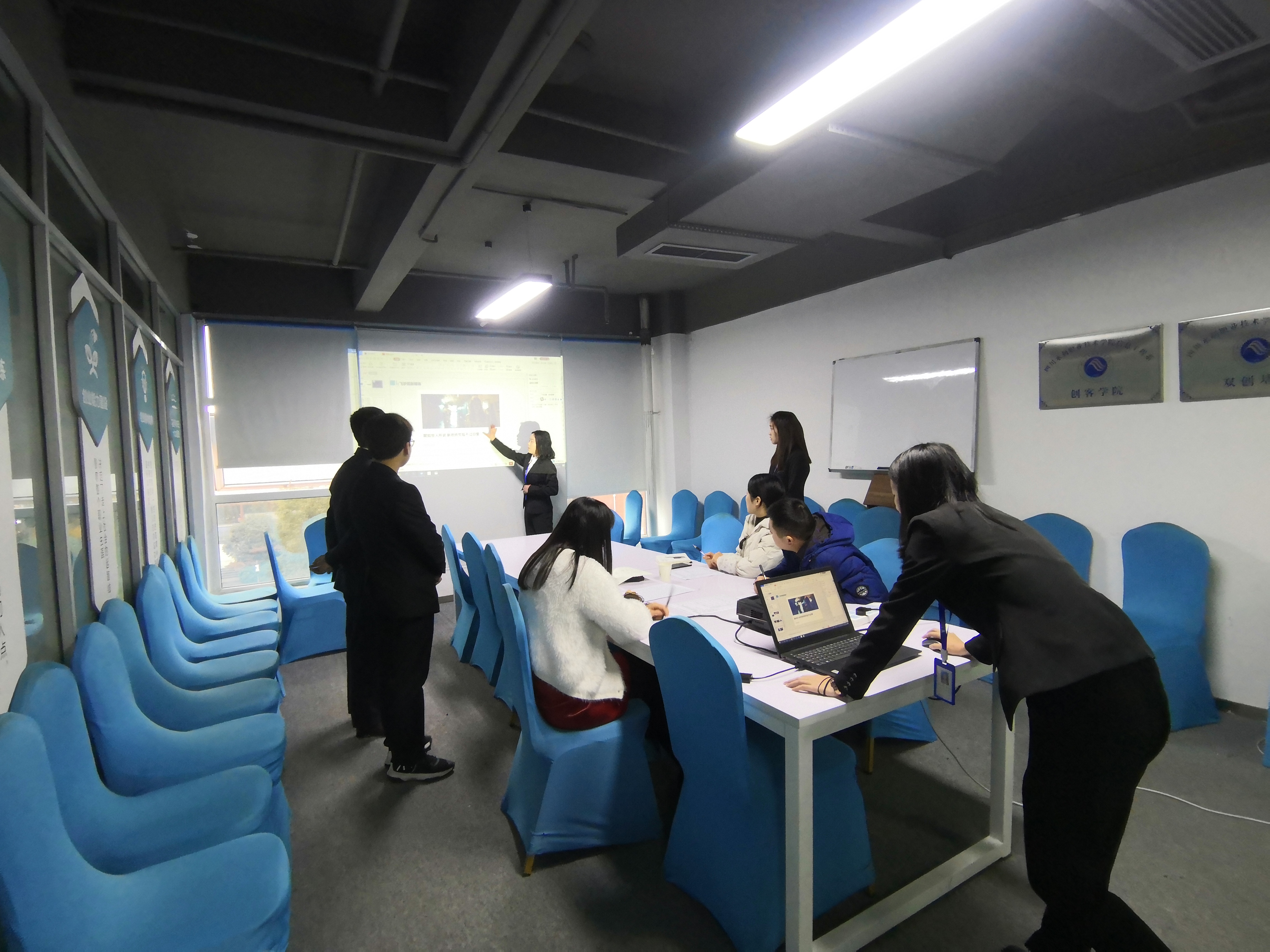 12月7日,为期一周的实训正式进入了答辩收尾阶段。本次答辩是由项目指导老师以及就业老师共同组成的评委团,分为三个答辩场,分别按照抽签的形式来决定各小组答辩的先后顺序。