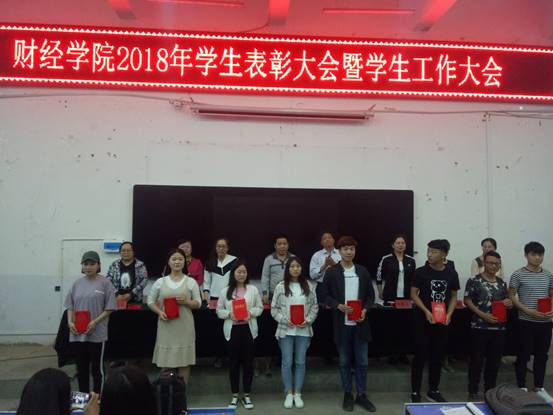 为了表彰先进,传承作风,财经学院于5月7日下午,在五区多媒体报告厅召开2018年学生表彰大会暨学生工作大会。财经学院党总支书记梁兆民、院长李东营、副院长袁向华、团总支书记黄春华以及全体辅导员和全体在校生参加了会议。会议由袁向华副院长主持。