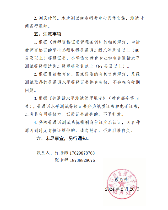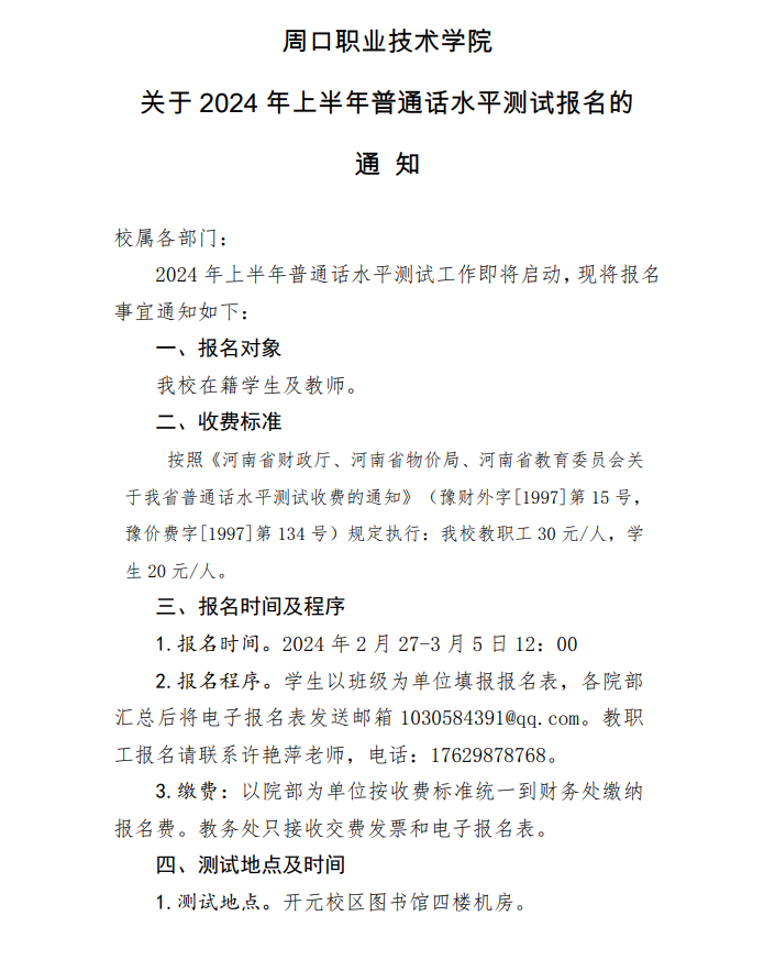万象城体育awcsport关于2024年上半年普通话水平测试报名的通知
