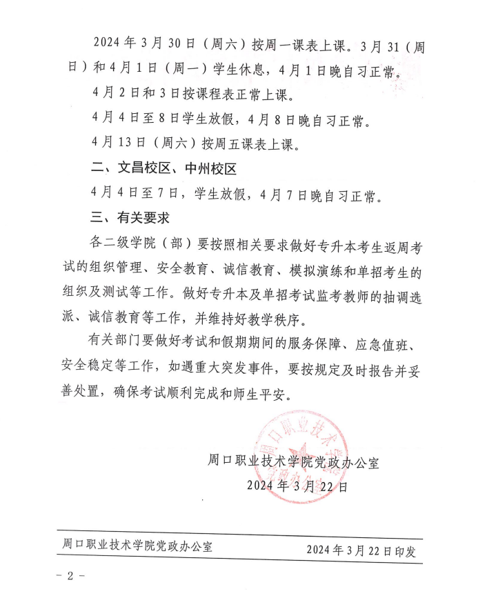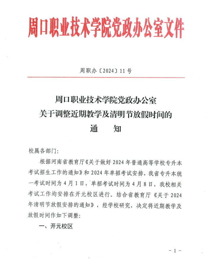 万象城体育awcsport党政办公室关于调整近期教学及清明节放假时间的通知