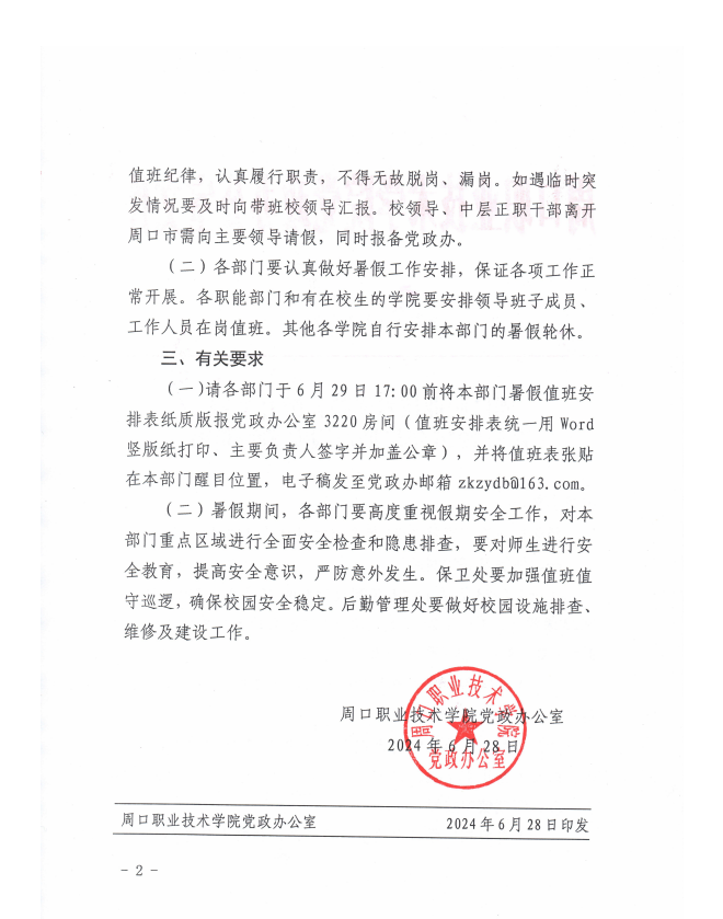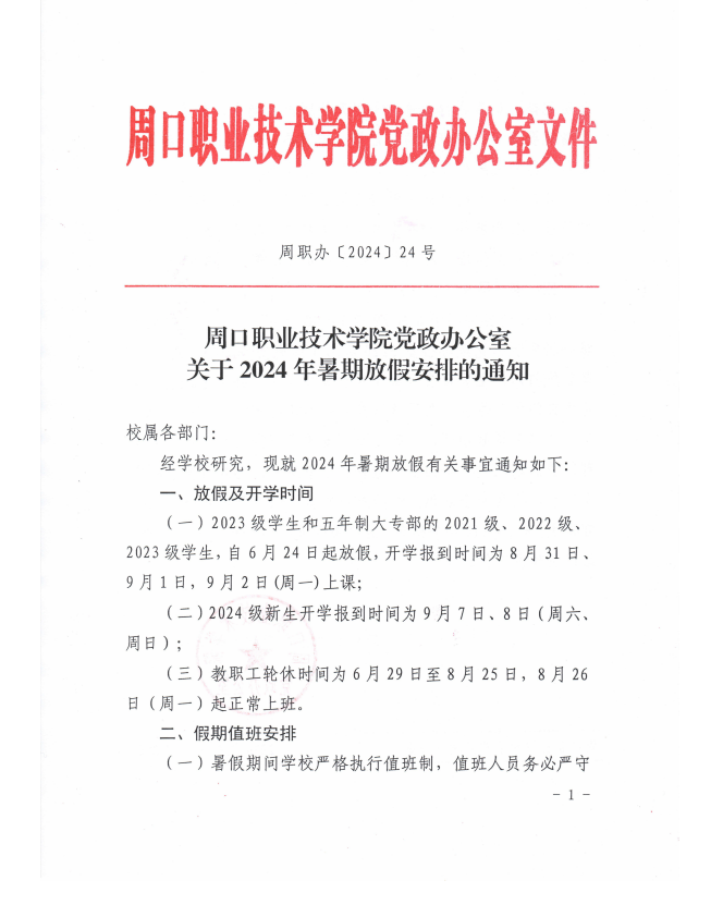 万象城体育awcsport党政办公室关于2024年暑期放假安排的通知