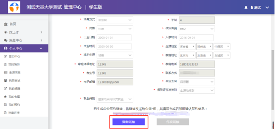 点击【创建企业签约链接】-【复制链接】给意向签约企业。反馈并确认无误点【确认签约】提交高校审核。