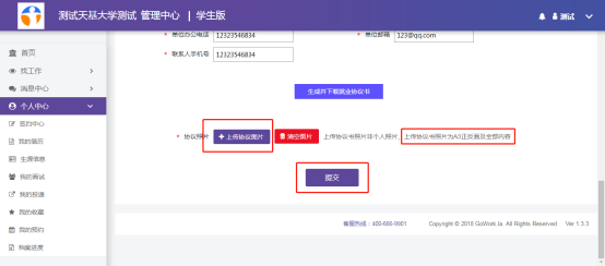 2步:完善企业信息,上传协议图片,提交高校审核。