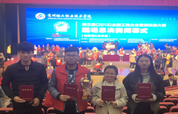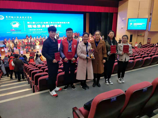 万象城代表队由17级财务管理一班赵豪威,17级财务管理二班李瑞莹、张淳鑫、陈琪组成,在学校领导及财经学院的支持下,由袁向华副院长带队,赫莉娟老师为指导老师,从预赛就开始积极准备,经过反复总结与研究,最终突出重围获得现场总决赛名额,并在11月17-18日的贵阳现场总决赛中通过团队配合,获得总决赛二等奖的优异成绩!