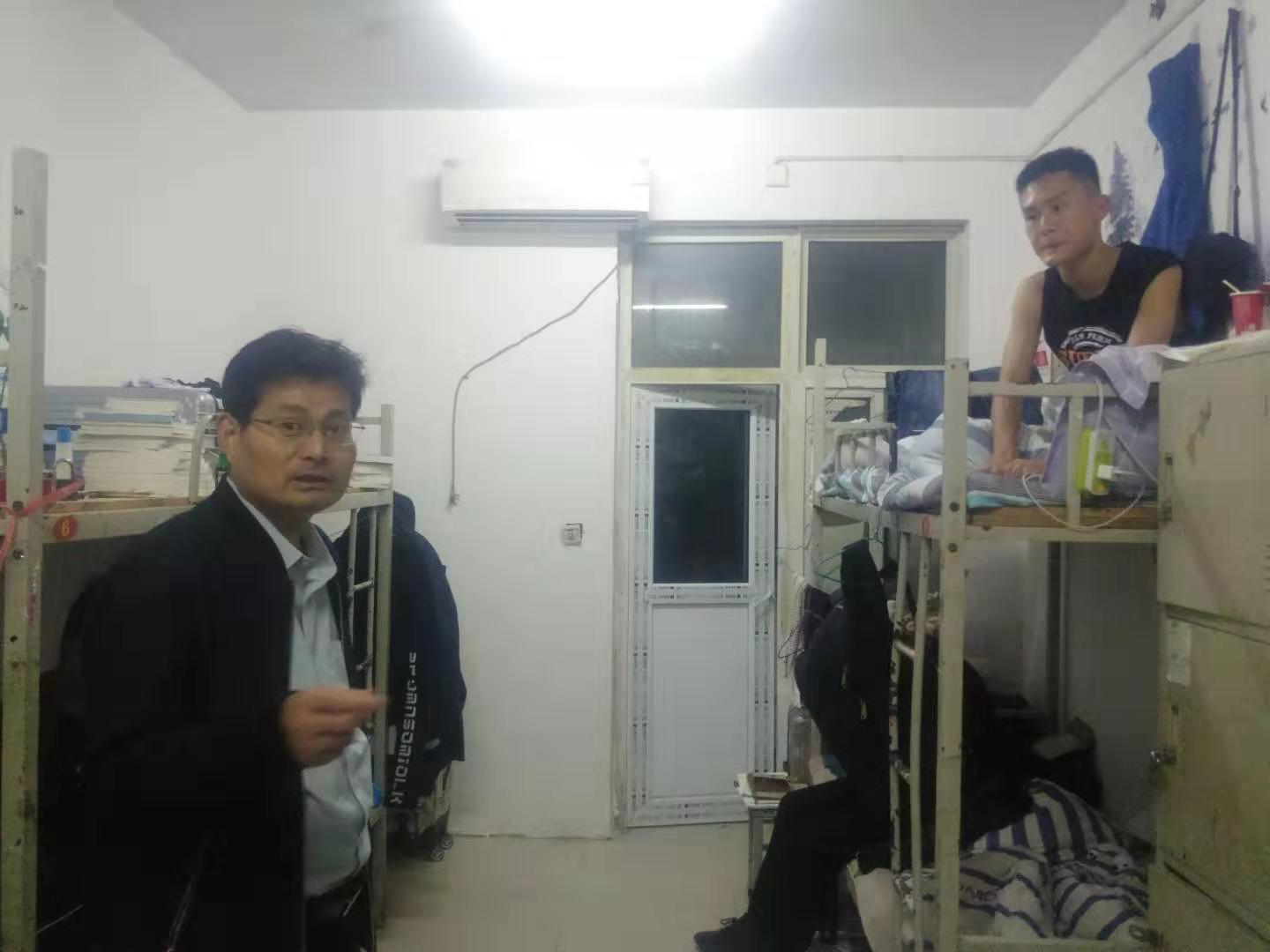 为进一步了解学生生活情况。2019年10月14日晚,allwincity万象城贾涛书记带领部分辅导员和学生干部深入宿舍,对宿舍卫生、安全等情况进行了检查。