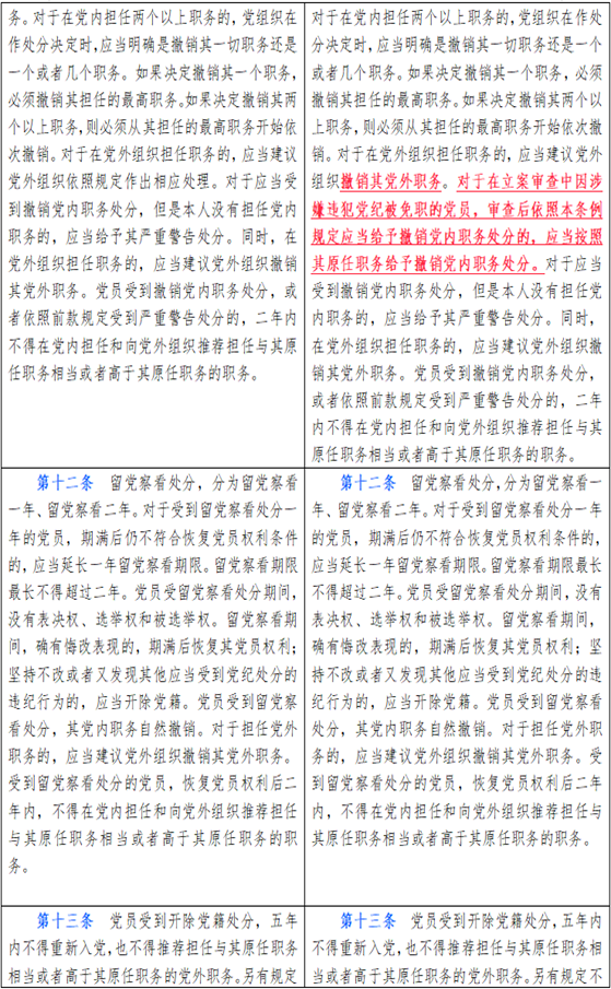中国共产党纪律处分条例新旧对比天天学习材料二