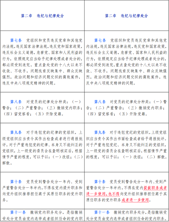 中国共产党纪律处分条例新旧对比天天学习材料一