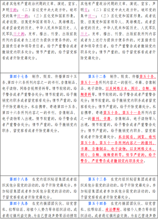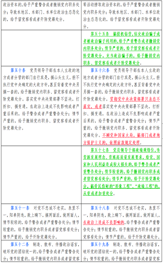 中国共产党纪律处分条例新旧对比天天学习材料六