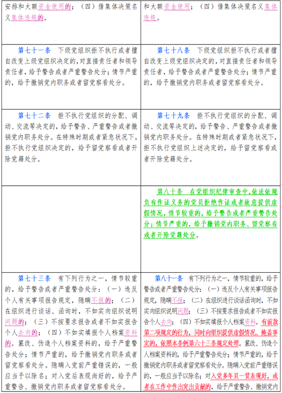中国共产党纪律处分条例新旧对比天天学习材料十一