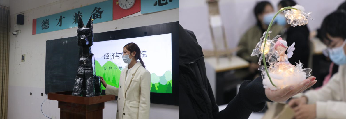 为增强万象城广大同学的环保意识,万象城于2022年11月12日下午在4203教室举行“爱护环境,变废为宝”主题活动。21级、22级在校学生积极参与,由22级电子商务2班张祥留担任本次活动的主持人,现场观众担任评委进行投票。