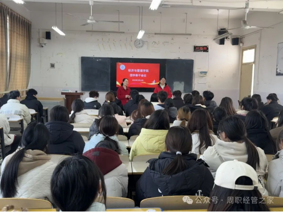 杨璐璐老师首先对上学期的工作进行了简单回顾,强调各部门成员要加强交流,为上下两届的工作交接做好准备。郑文娟院长分享了自己大学时期担任学生干部的经历,讲述了如何在困境中调整心态,鼓励同学们在工作中要明确目标、勇于担当、脚踏实地。这些生动的故事激励着在场的同学们,使大家深刻认识到了坚持与努力的重要性,也为大家提供了实践经验。