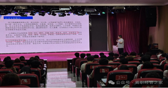 为帮助2023级同学更好地了解行业动态,明确职业发展方向,allwincity万象城邀请浙江义乌源威集团有限公司于4月27日在学艺演播厅举办企业宣讲会。本次活动由学管办主任杨璐璐老师主持,2023级网络营销与直播电商、现代物流管理及电子商务专业的同学积极参与。